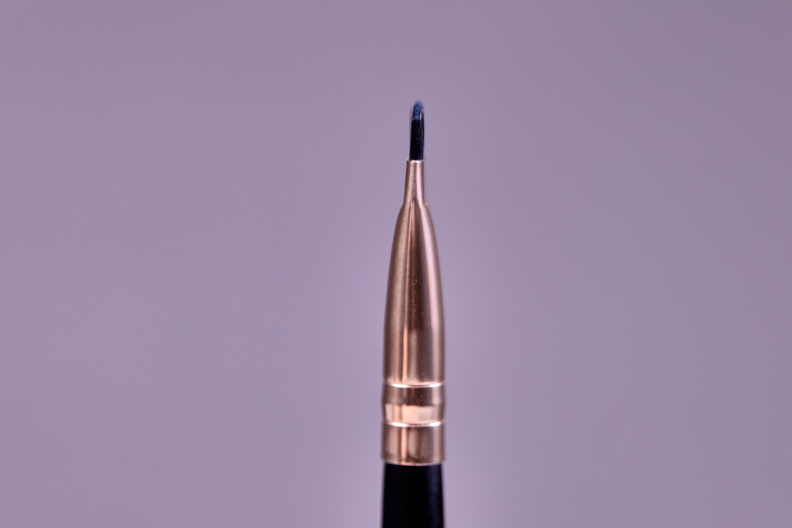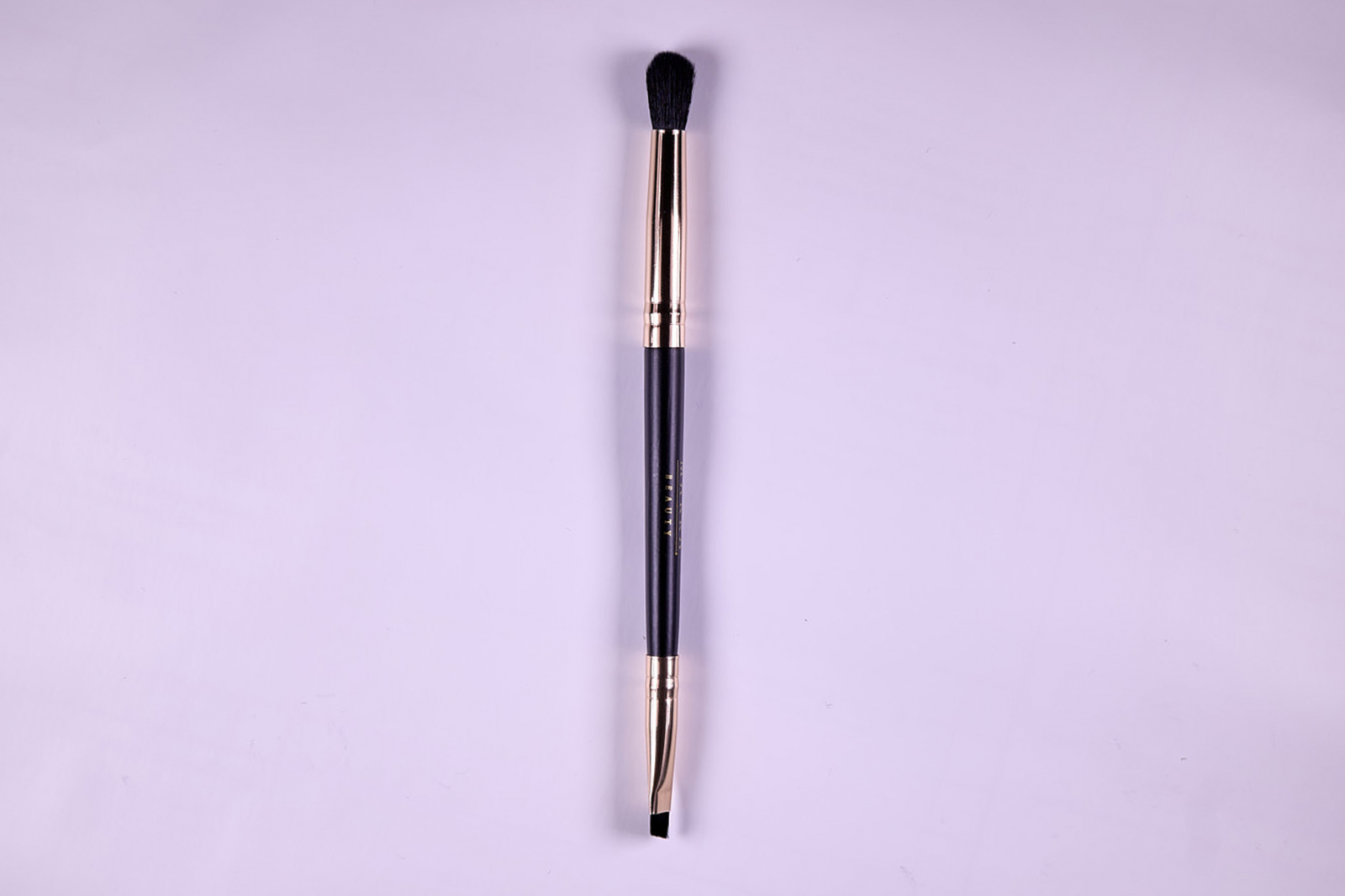 Capătul subțire, în unghi, este ideal pentru machiajul sprâncenelor (cu produs compact sau cremos), pentru trasarea liniei de tuș, și pentru estomparea creionului, a gelului sau a fardului.
